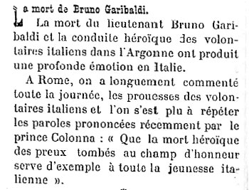 Posted by argonne1418 on 7 janvier 1915 · Commentaires fermés sur Dans la presse le 7 janvier 1915 : La mort de Bruno Garibaldi