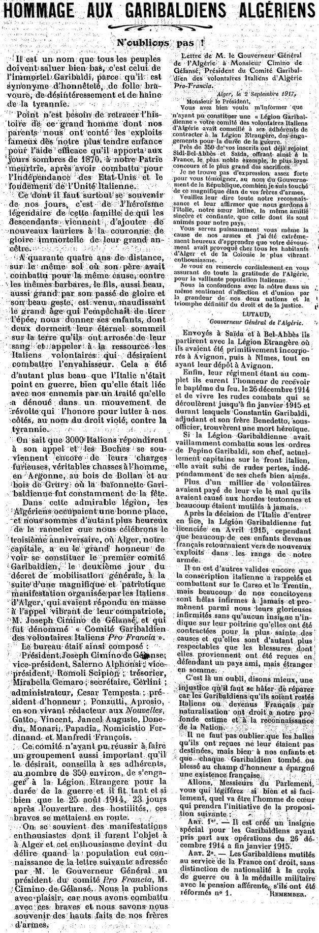 Posted by argonne1418 on 5 août 1917 · Commentaires fermés sur Dans la presse le 5 août 1917 : Hommage aux Garibaldiens algériens