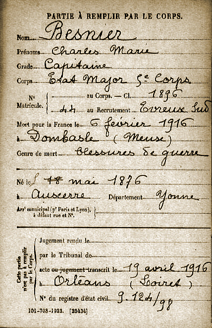 La fiche Mort pour la France du Capitaine BESNIER