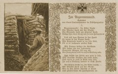 Au fond de la tranchée ou à l’arrière on écrit, on raconte la vie dans les tranchées, les combats…Ces écrits prennent parfois la forme de poêmes, de chansons, tant du côté français que du côté allemand. Publiés pour certains dans la presse ou édités sous forme de cartes postales, ces poêmes font partie de l’héritage que nous ont laissé les combattants de l’Argonne.