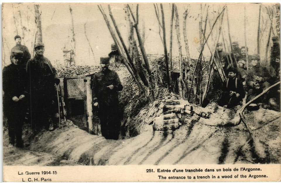 Entrée d’une tranchée dans un bois de l’Argonne