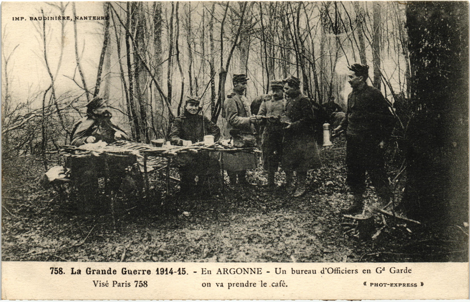 En Argonne, un bureau d’officiers en grand Garde. On sert le café