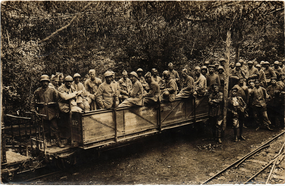 Prisonniers français sur un wagon de l’Argonnenbahn