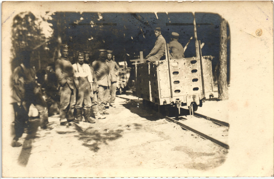 Soldats allemands dans un wagonnet