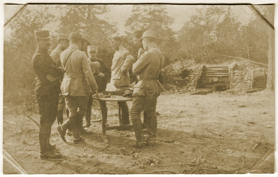 Officiers d’artillerie à proximité de leur pièce à la Placardelle en juin 1915