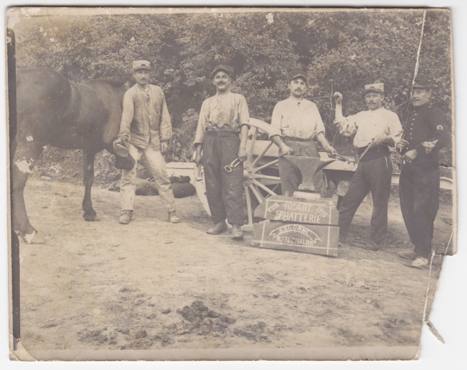 Maréchaux-ferrants de la 9ème Batterie du 40ème Régiment d’Artillerie en Argonne en 1915