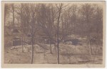 - Soldats allemands devant leurs abris dans un camp de la forêt d’Argonne