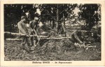 - Soldats allemands coupant du bois pour le feu à proximité de leur campement