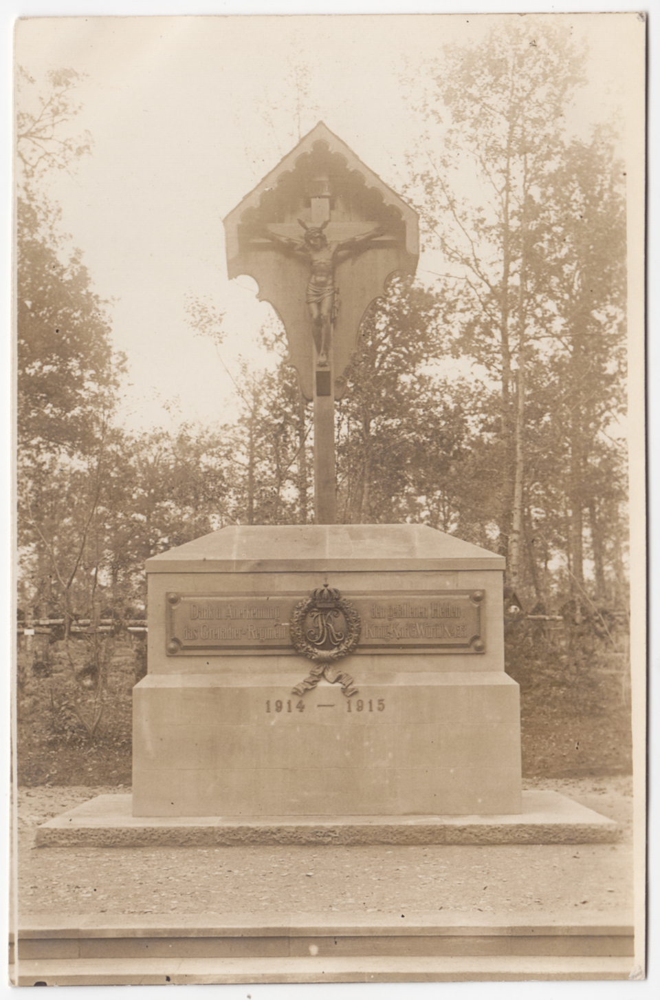 Note : Le christ a été sculpté dans un fût de chêne par le Lieutenant de réserve Köhler du 123ème Régiment de Grenadiers d’Ulm. Il fut sauvé par les habitants de Vienne-le-Château après que le cimetière fut relevé vers 1942.