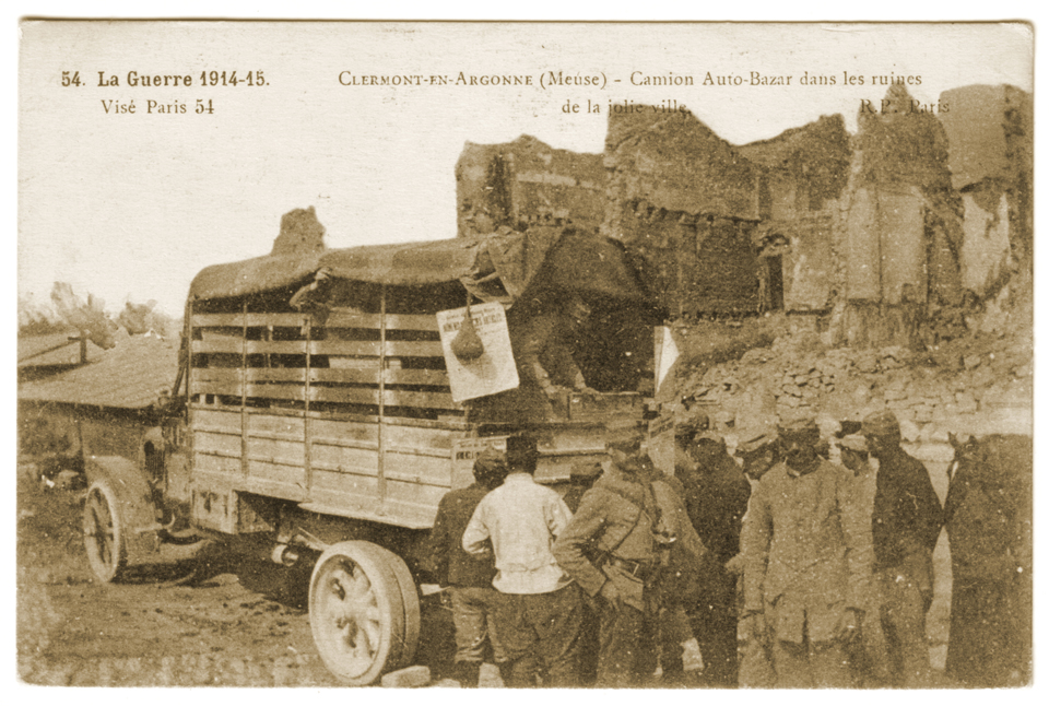 Clermont-en-Argonne : Camion Auto-Bazar dans les ruines de la jolie ville