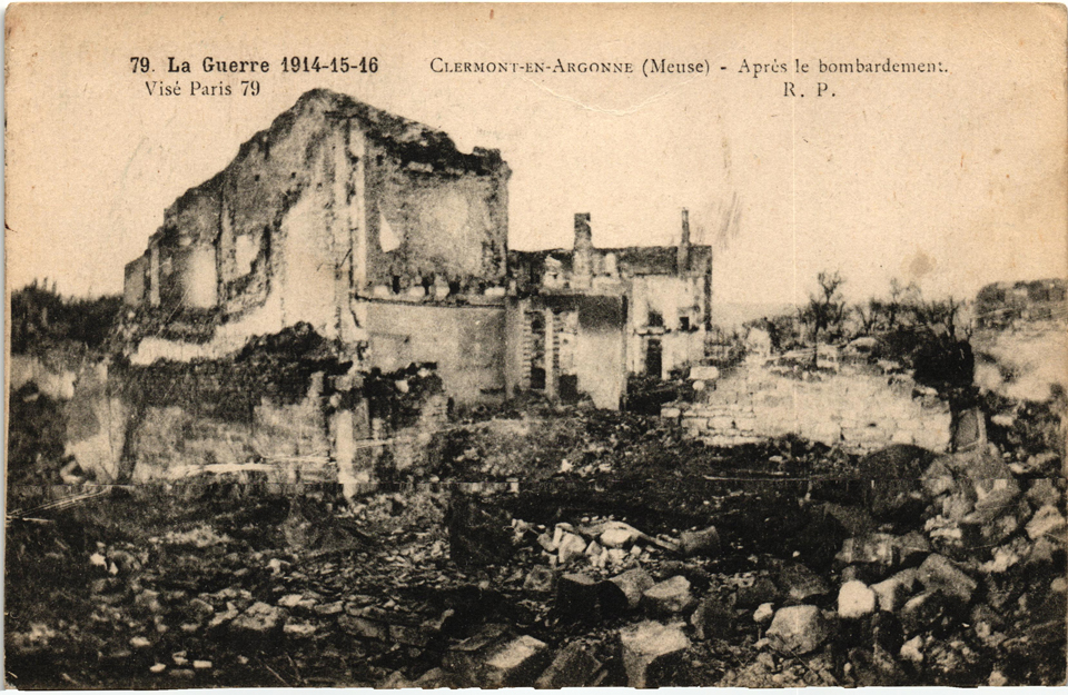 Clermont-en-Argonne après le bombardement