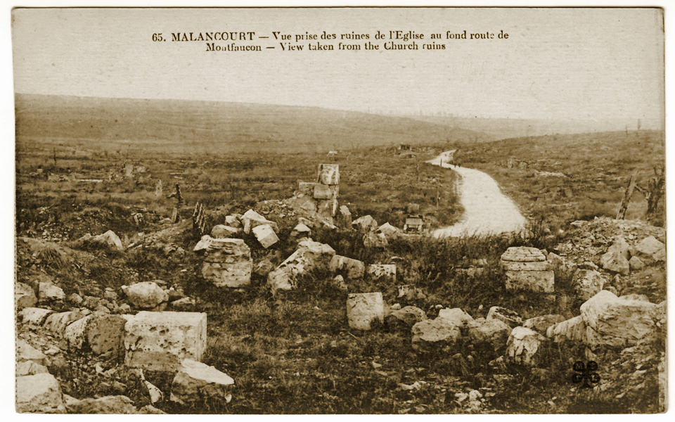 Vue de Malancourt prise des ruines de l’Eglise, au fond route de Montfaucon