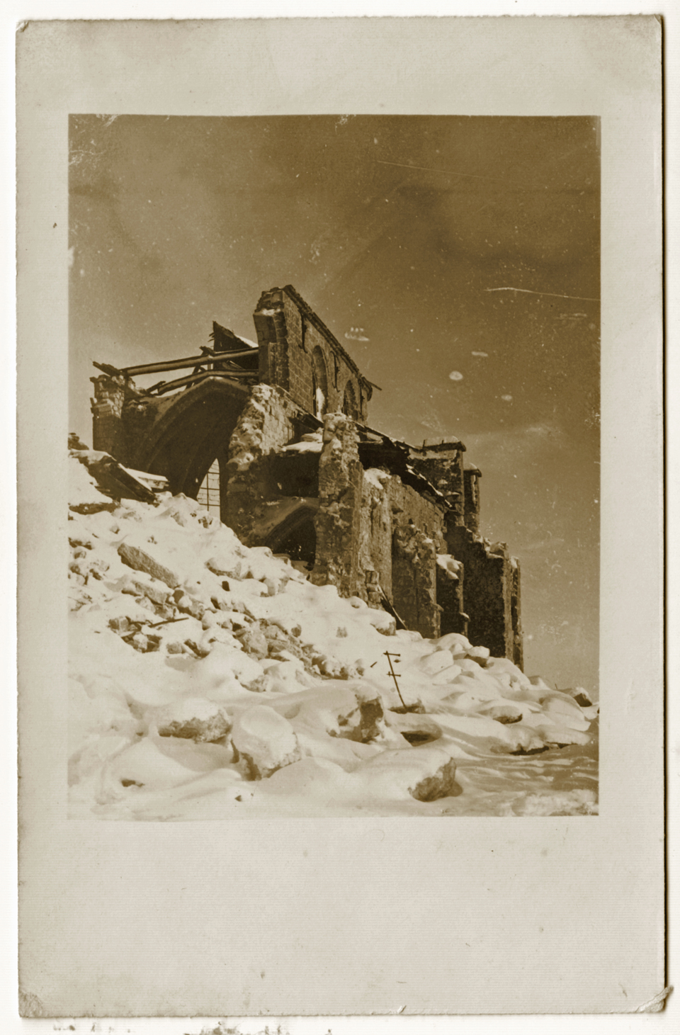 Les ruines de l’église de Montfaucon sous la neige