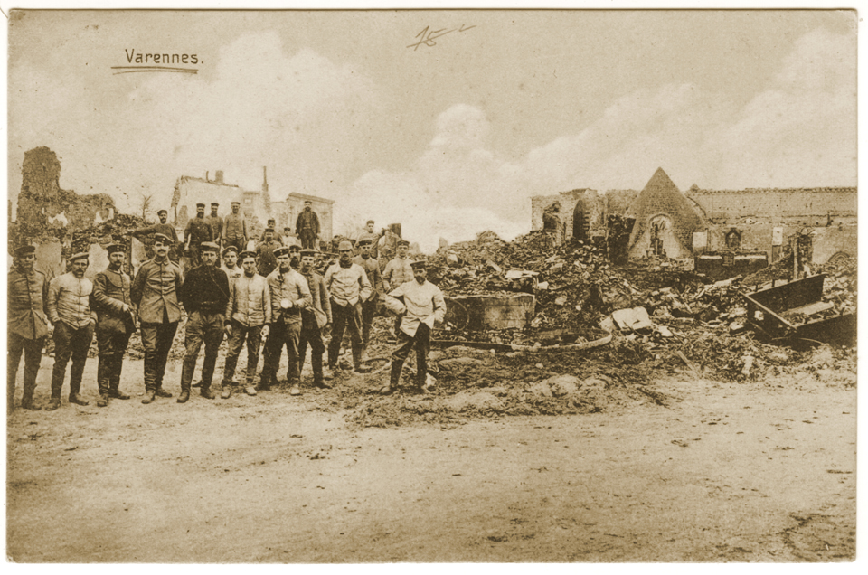 Varennes-en-Argonne, soldats allemands au milieu des ruines